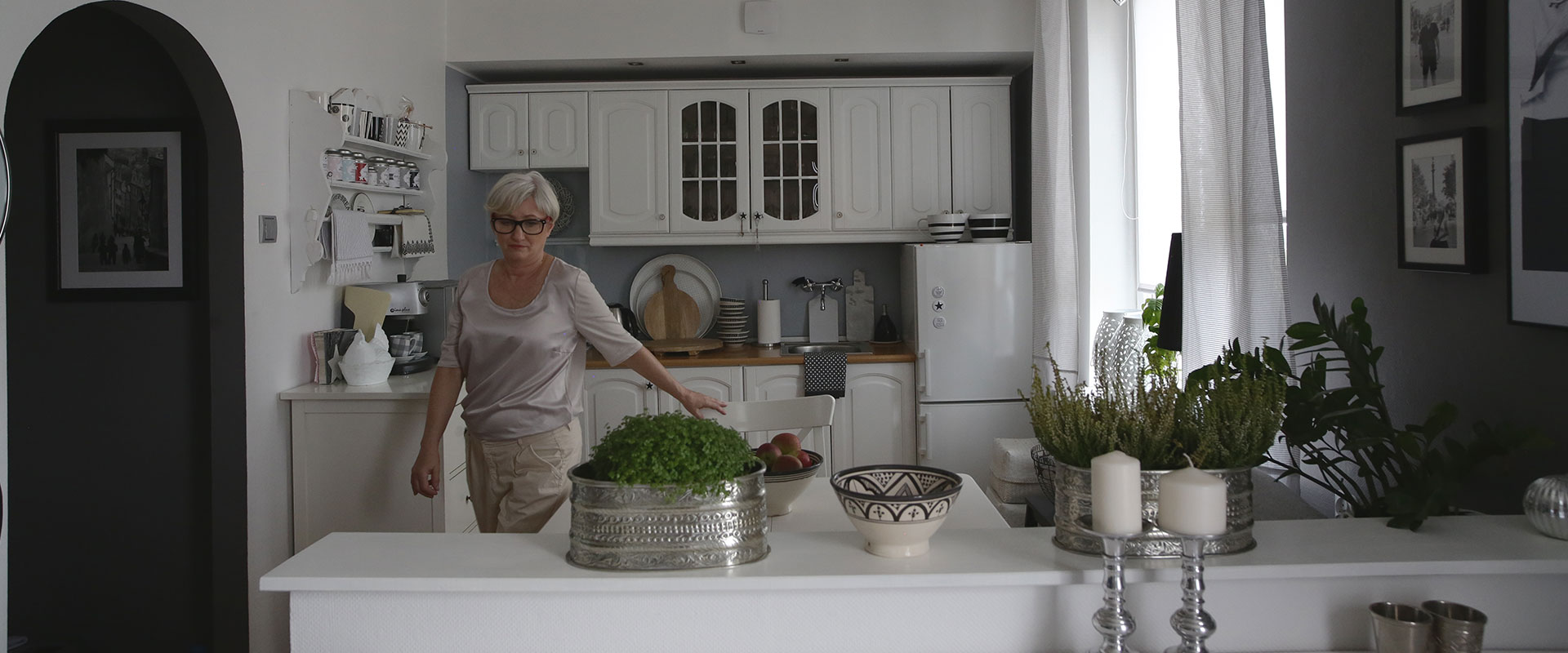 Nasza bohaterka jest matką dwóch dorosłych córek. Jedna z nich zdecydowała się przenieść za granicę, druga właśnie odebrała klucze do własnego mieszkania. Ta zmiana zainicjowała kolejne. Na pierwszy ogień poszło jej mieszkanie. Dotychczas klasyczne wystrojem i w stonowanych kolorach stanowiło idealny materiał do transformacji.