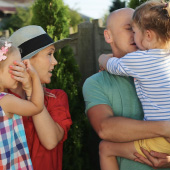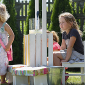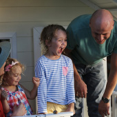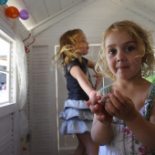 Gdy dziewczynki po raz pierwszy zobaczyły domek wprost oszalały z radości. Rodzice zadbali o każdy detal – kremowa elewacja z białymi elementami, czarna dachówka, małe okienka ze szprosami, a w nich kolorowe zasłonki. Małe mieszkanki są zachwycone i wciąż odkrywają na nowo swoje ulubione miejsce zabaw.